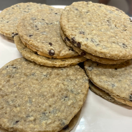 oatmeal chocolate chip cookie filled with a mini egg buttercream