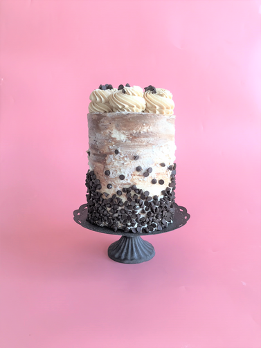 A Fluffy banana cake, sweet cream buttercream filled with a rich chocolate truffle center