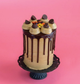 Rich chocolate cake, peanut butter buttercream filled with chocolate truffle & reeses pieces